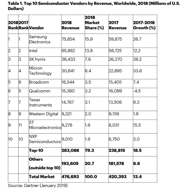 19年第1四半期の半導体企業ランキング 首位intelがsamsungとの差を拡大 マイナビニュース